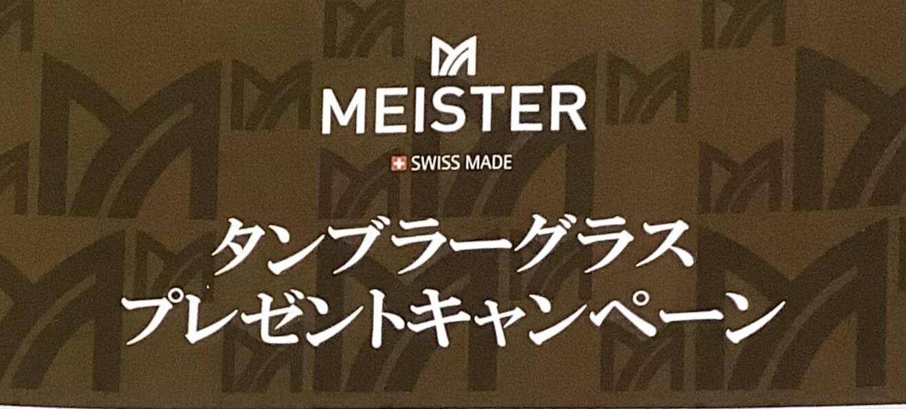 【TOMPKINS水戸】 こんにちは🇨🇭 最高のつけ心地を持つMEISTERにてタンブラーグラス プレゼントキャンペーン開催中✨ 期間:12月1日〜2月1日 上