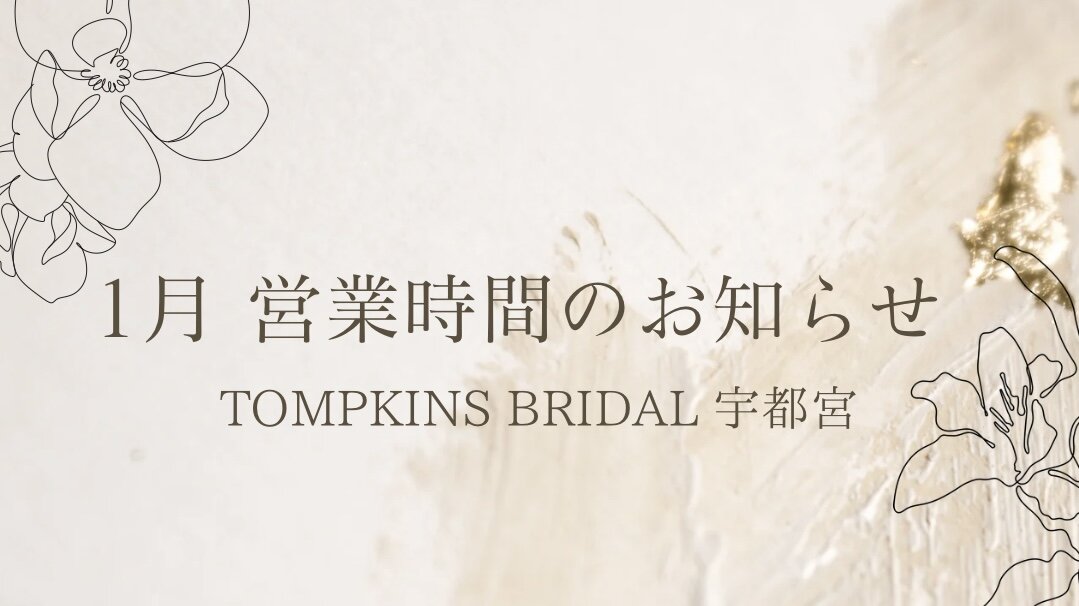 皆さまこんにちは❄️ トンプキンスブライダル宇都宮の営業日のお知らせです📢 【宇都宮店 営業時間】 平日(水曜定休)11:00〜19:00※2日は18:00まで