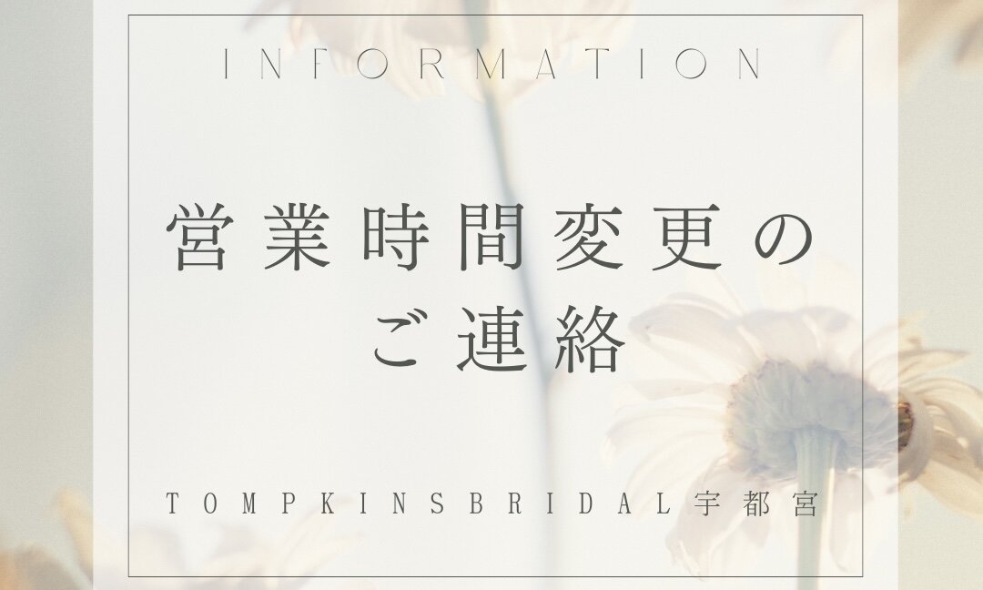 平素よりTOMPKINS BRIDAL 宇都宮をご利用いただき、誠にありがとうございます😊 この度、11月1日(土)より、営業時間を下記の通り変更させていただき