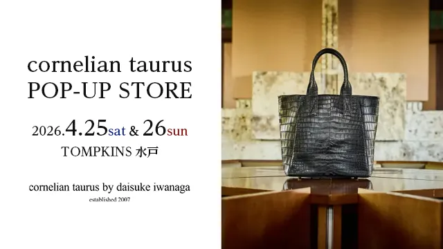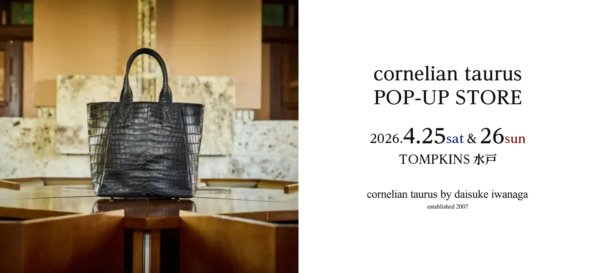 TOMPKINS水戸にて「cornelian taurus(コーネリアン タウラス)」のポップアップストアを期間限定で開催することになりました。 「cornel