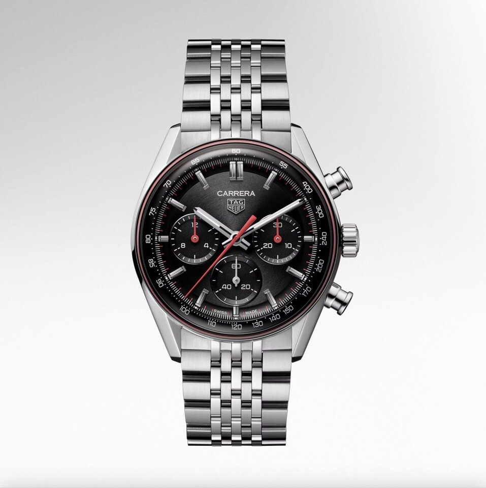 こんにちは。tompkins水戸です。 ホイヤー〜アイコニックなカレラご案内となります! 印象的なブラックダイヤルに繊細なレッドの外周リングがモーターレーシング