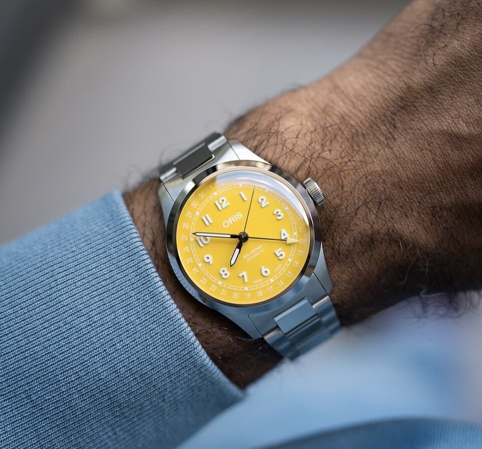こんにちは。tompkins水戸です。 オリス〜ポインターデイトご案内となります! 鮮やかなイエローが特徴的なビッククラウンポインターデイトはまるで太陽のように