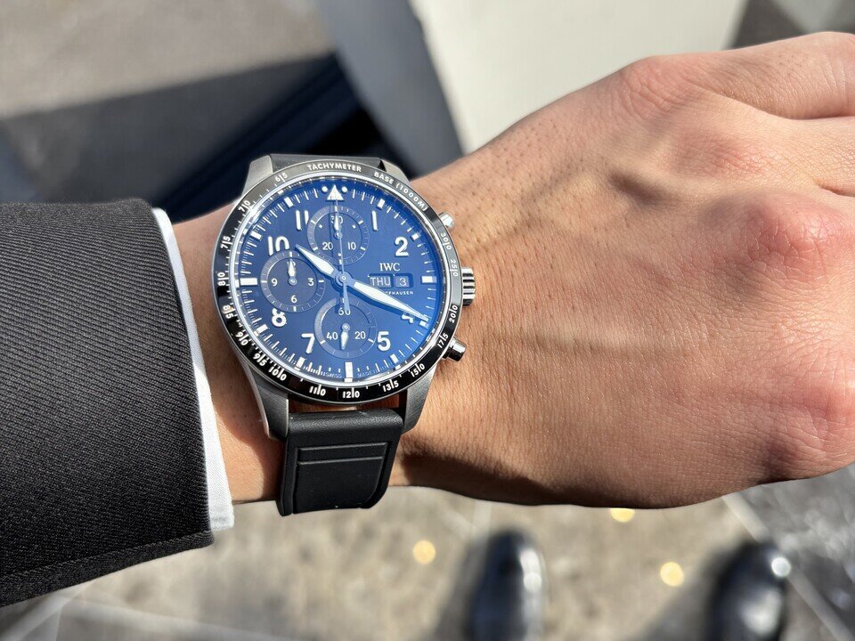 今回私がご紹介するモデルはIWCパイロットウォッチパフォーマンスクロノグラフ41AMGです! こちらのモデルは純正ステンレスベルト仕様もありますが今回はラバータ