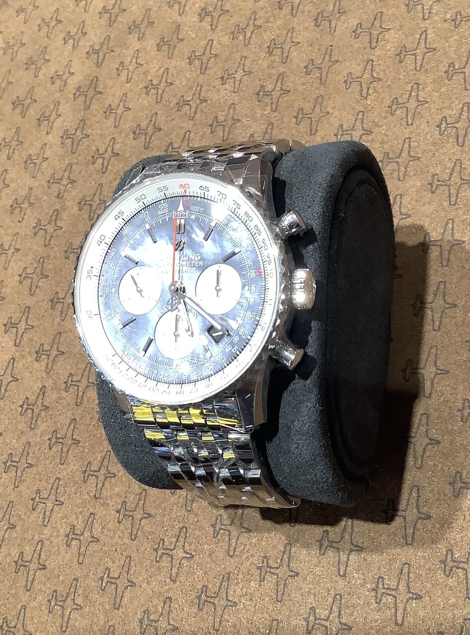 ナビタイマーの中でも一際目を引くパールの美しい輝きです、、