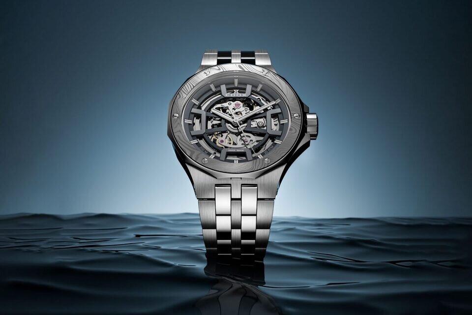 1973年のヘリテージモデルから受け継がれた、6つの砂時計ビスが印象的な12角形型ベゼル。そのフォルムに、かつて伝説として名を残した鍛造技術の精神を受け継ぎ、現代の高度な金属加工技術によって再構築したダマスカス鋼を融合しました。