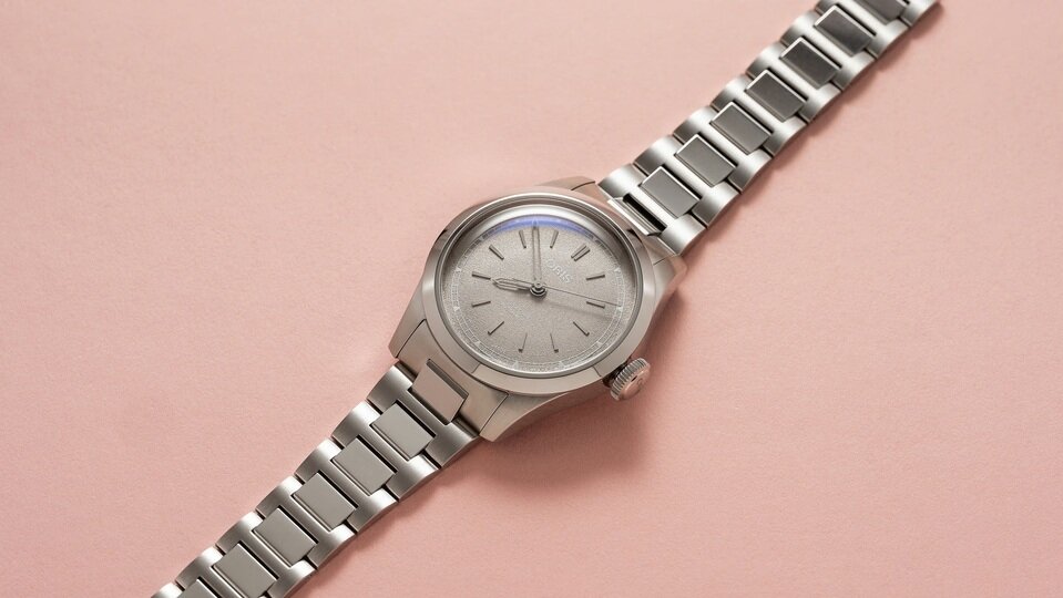 34mmのケースにテクスチャー加工されたブラウンダイヤル、スケルトン針、Hリンクメタルブレスレット、そしてスイス製の自動巻き機械式ムーブメントを搭載し、Orisを象徴するビッククラウンらしいデザインが新たに生まれ変わったモデルです。