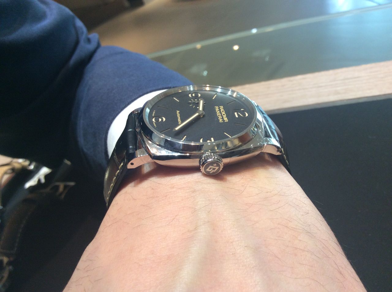 44mm以上のサイズも多いパネライでは42mmは選択肢は多くはないですが、一般的な時計のサイズに近いのでデイリーユースには適していると言えます![]()