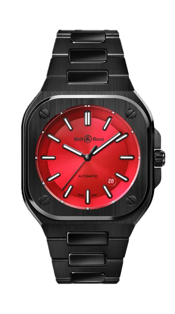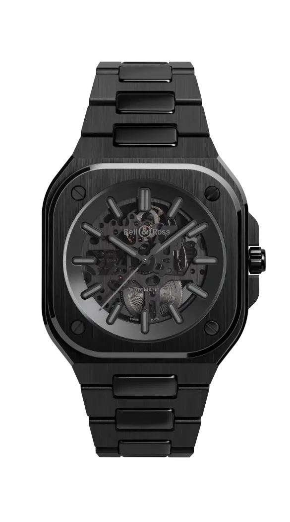 日本限定99本のリミテッドエディション。 この新しいBR-05のバリエーションは、アーバンコレクションを独自のエクスクルーシブカラーで再解釈したモデルです。 航空業界でも採用される素材であるセラミック製のケースは、堅牢性と高い技術性を象徴しつつ、Bell & Rossを代表するカラー「ブラック」に忠実であり続けます。