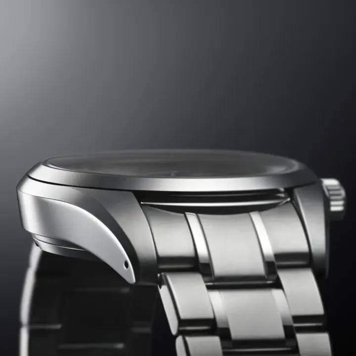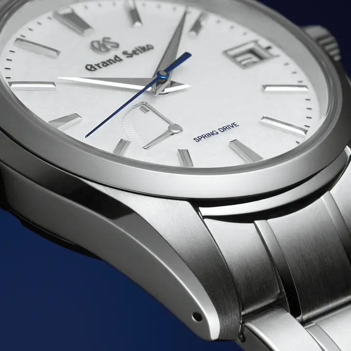 日本の長野県にある信州 時の匠工房でつくられたSBGA211。工房は、毎年数ヶ月にわたって雪に覆われる穂高連峰に囲まれています。ひんやりと乾いた空気の中で、風に吹かれた雪面は、繊細な風紋をつくりあげます。このモデルは、「雪白パターン」と呼ばれる、その雪面を表現したダイヤルパターンを使用し、その上ブルースチールの秒針が、スプリングドライブ独自のスイープ運針によって流れ、連続する自然な時の流れを美しくあらわします。