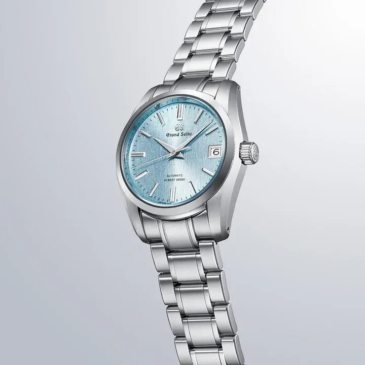 9Sメカニカルモデルの伝統的なスタイルを継承しながら、新たなダイヤル表現を採用したモデルです。グランドセイコーの機械式モデルの製造元「グランドセイコースタジオ 雫石」から望む岩手山で厳冬期に見られる「氷瀑」をイメージ。「氷瀑」は、滝から流れる水が氷点下でゆっくりと時間をかけて凍りついていく自然現象。その幻想的な光景を、ダイナミックさと繊細さが共存したパターンを施したアイスブルーのダイヤルで表現しました。ムーブメントには毎秒 10 振動のハイビートムーブメント「キャリバー9S85」を搭載し、精度のばらつきを抑え、安定した精度を実現。径37㎜のケースには、耐食性に極めて優れたエバーブリリアントスチールを採用しています。