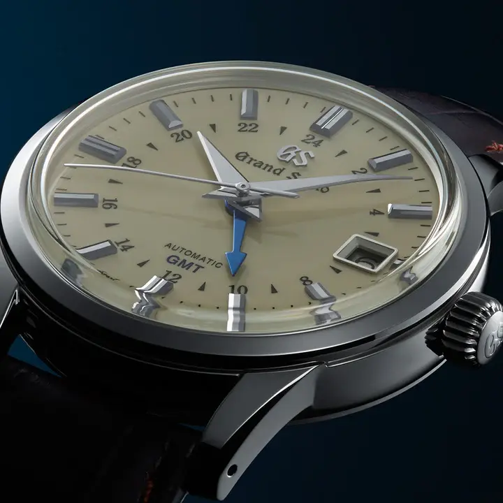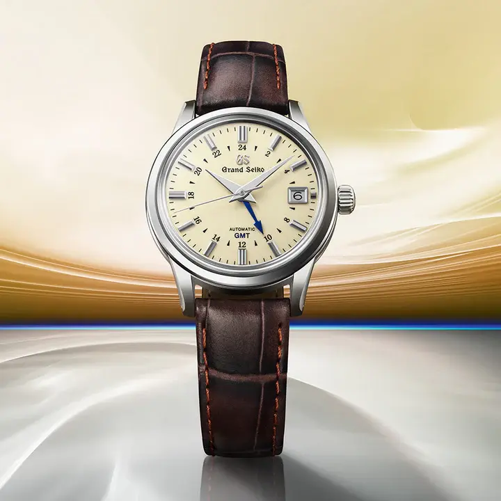 クラシックな時計を上品に着こなす大人のメカニカル自動巻3Days GMT 多くのお客様から長きにわってご支持いただいてきたクラシックスタイルのGMT機能つきモデルが、デザインはそのままに進化したキャリバー9S66を搭載して登場です。 最大巻上時約3日間持続、最新のひげぜんまいとMEMS(メムス)製法による脱進機(アンクル、がんぎ車)を採用することで、実使用時の精度の安定性が向上しました。 昔ながらのクラシカルなフォルムを蘇らせたボックス型サファイアガラス、繊細なザラツ研磨を施した緩やかに流れるかん足部、こげ茶色のレザーストラップ、味わい深いアイボリーのダイヤル、ブルースチールの24時針が、上品なクラシックスタイルを作り上げています。 裏ぶたはシースルーバック仕様となったことで、機械式ムーブメントが精緻な時を紡ぐ動きを目で見てお楽しみいただけます。 自己主張しながらも身につける人の個性を引き立ててくれるこの時計は、使い込むほどに愛着が増し、その時々の年齢に相応しい大人の魅力を引き立ててくれます。