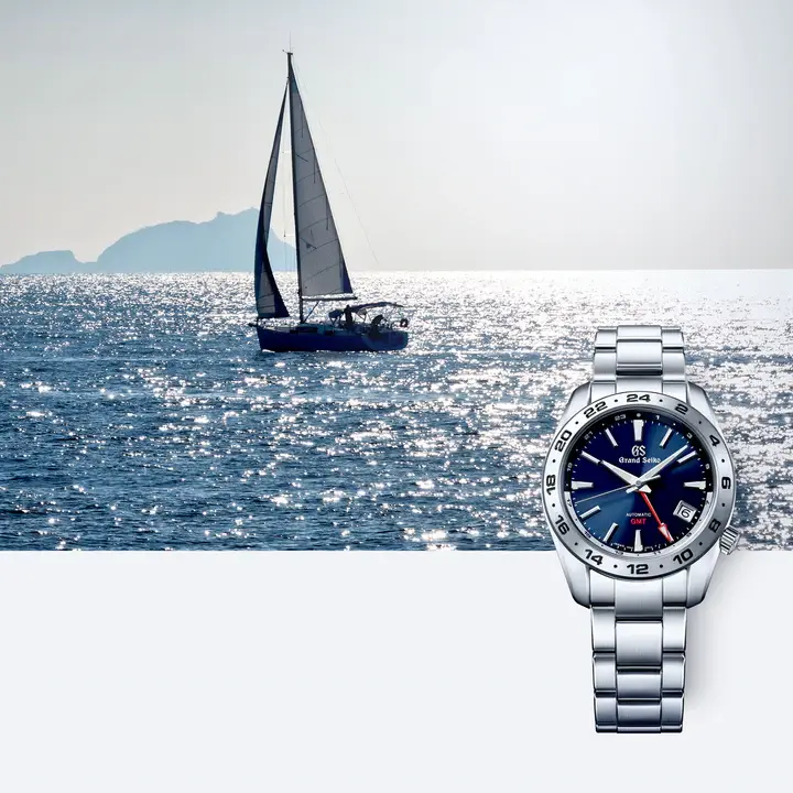 コンパクトサイズのメカニカルGMTウオッチ このGMTウオッチは、実用性と美しさを両立したグランドセイコーらしい時計のひとつです。様々なシーンにおいて、正確な時刻を正確かつ迅速に読み取ることができるよう、より太く見やすい時分針やインデックスを採用し、秒針、GMT針に至るまで、それぞれが見分けやすいようにデザインのバランスを極め、高い視認性を追求しています。 海洋のように多彩な表情が生まれる青色のダイヤルも、実用性と美しさを両立している、特徴的な点です。 また、40.5mmのコンパクトなケースサイズでありながら、20気圧の強化防水を備えている点も、スポーツウオッチに求められる要件を十分に満たしています。
