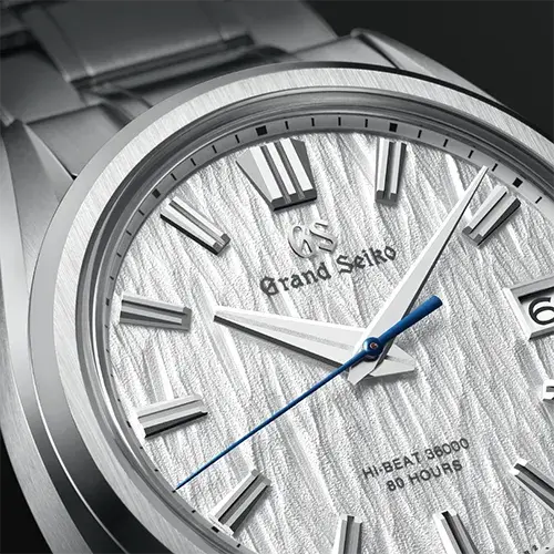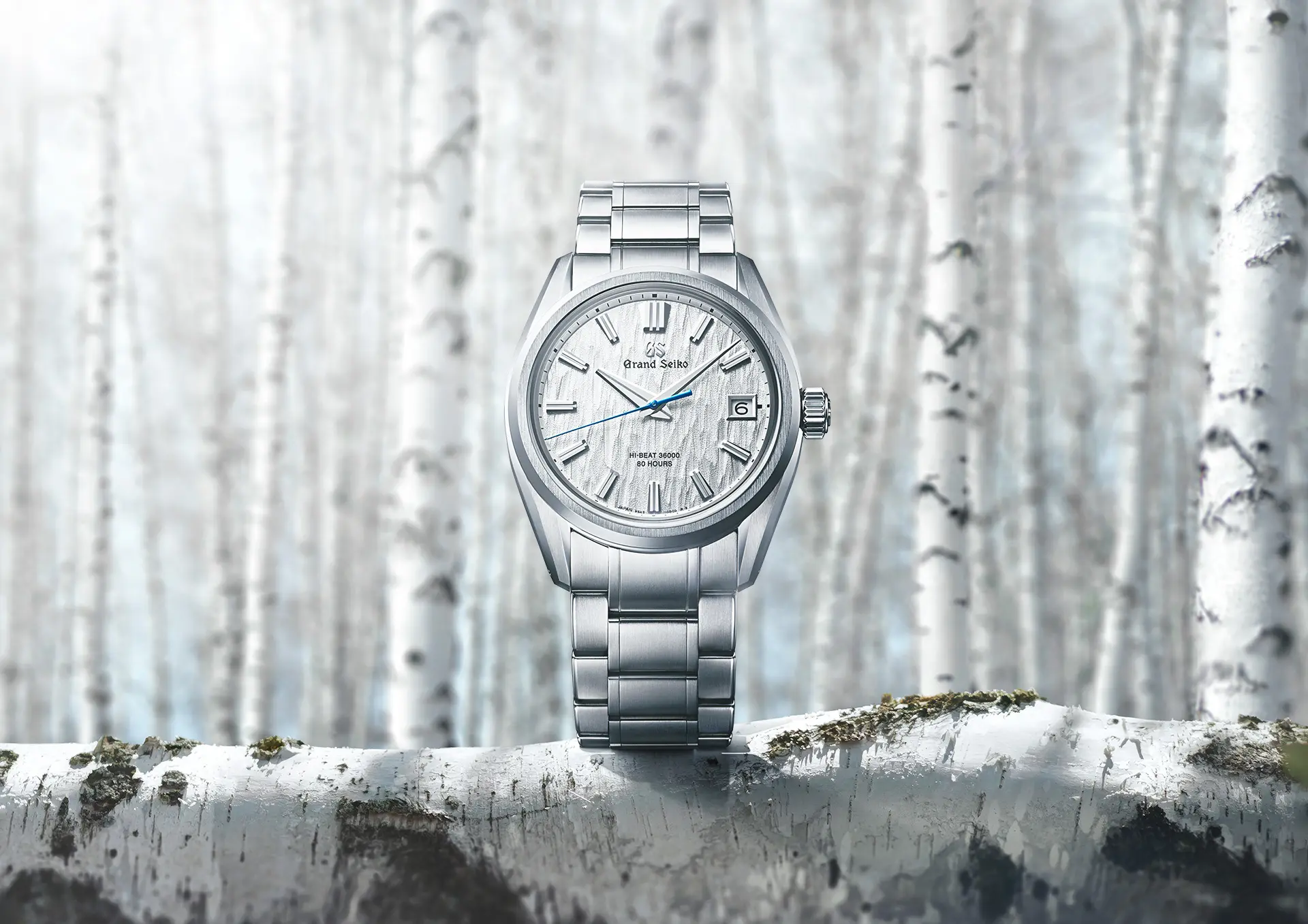生命力あふれる荘厳な白樺林をダイヤルに表現。 グランドセイコーの機械式時計の製造拠点「グランドセイコースタジオ 雫石」の近くには、日本有数の白樺の群生地域があります。高原の澄んだ空気をまとい、すらりと高く伸びた白樺が奥行きを持って幾重にも林立する神秘的な光景からは、自然の美しさや力強さを感じることができます。本作では、この壮麗な白樺林をダイナミックな型打模様と繊細なカラーリングを施したダイヤルで表現しています。 本モデルには、メカニカルハイビートムーブメント「キャリバー9SA5」が搭載されています。デュアルインパルス脱進機(高効率な脱進機)やツインバレル(二つの動力ぜんまい)を採用することにより、毎時36,000振動のハイビートでありながら最大巻上時には約80時間駆動を達成するとともに、独自の水平輪列構造によって薄型化を実現しています。