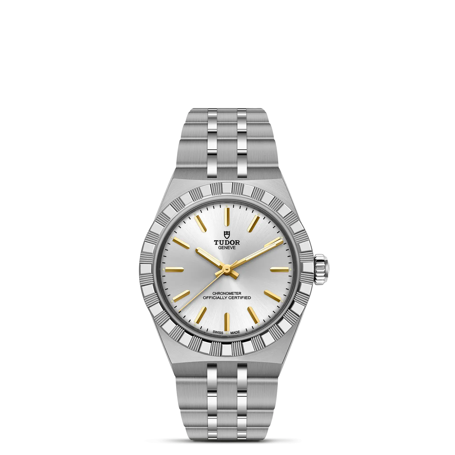 ステンレススチール製5リンクの一体型ブレスレット、サイドリンクとセンターリンクはサテンブラッシュ仕上げ、中間リンクはポリッシュ仕上げ、チューダー独自の“T-fit”セーフティキャッチ付きフォールディングクラスプ