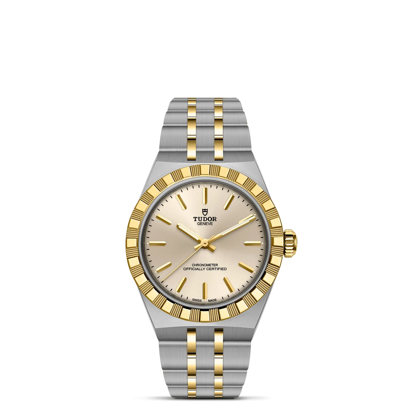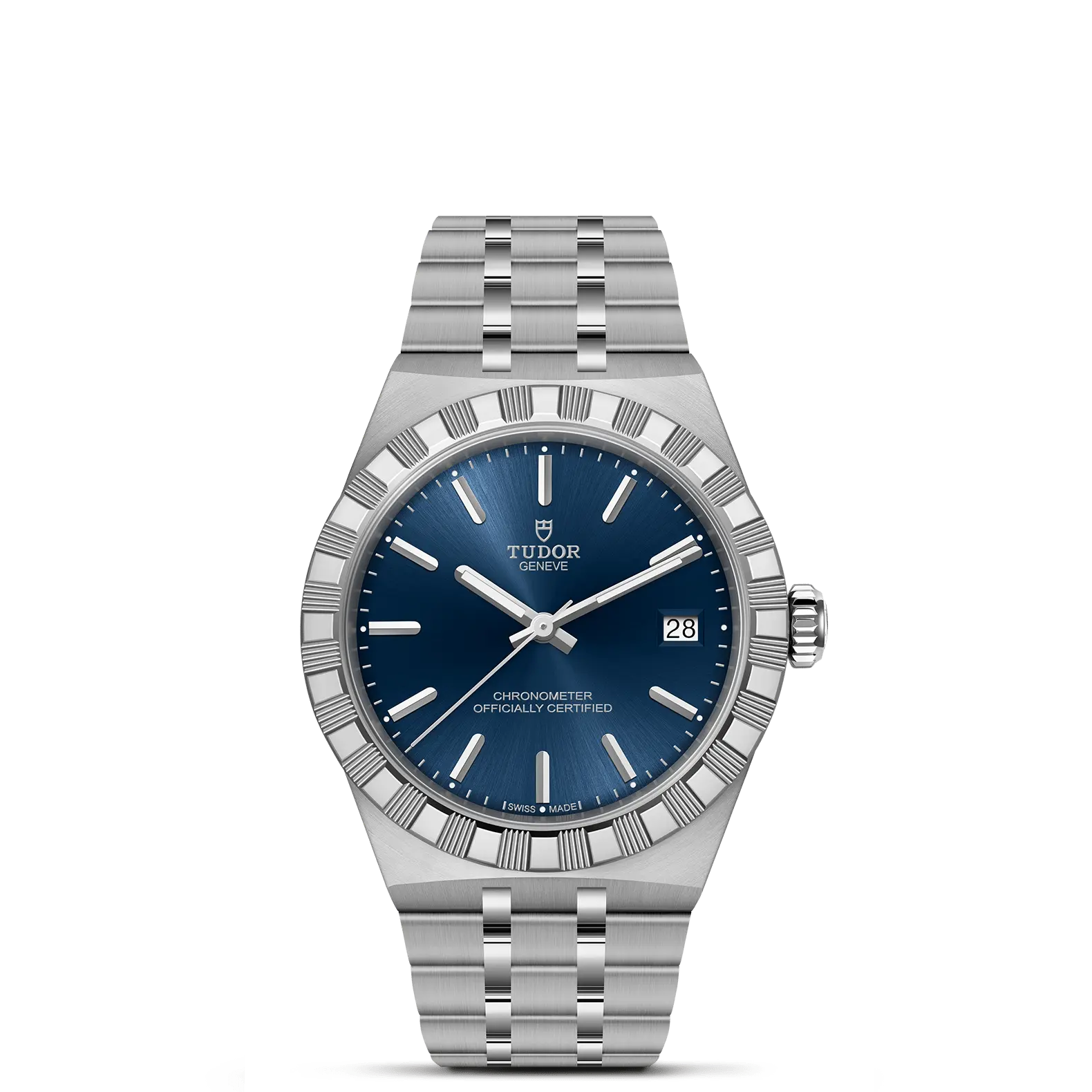ステンレススチール製5リンクの一体型ブレスレット、サイドリンクとセンターリンクはサテンブラッシュ仕上げ、中間リンクはポリッシュ仕上げ、チューダー独自の“T-fit”セーフティキャッチ付きフォールディングクラスプ