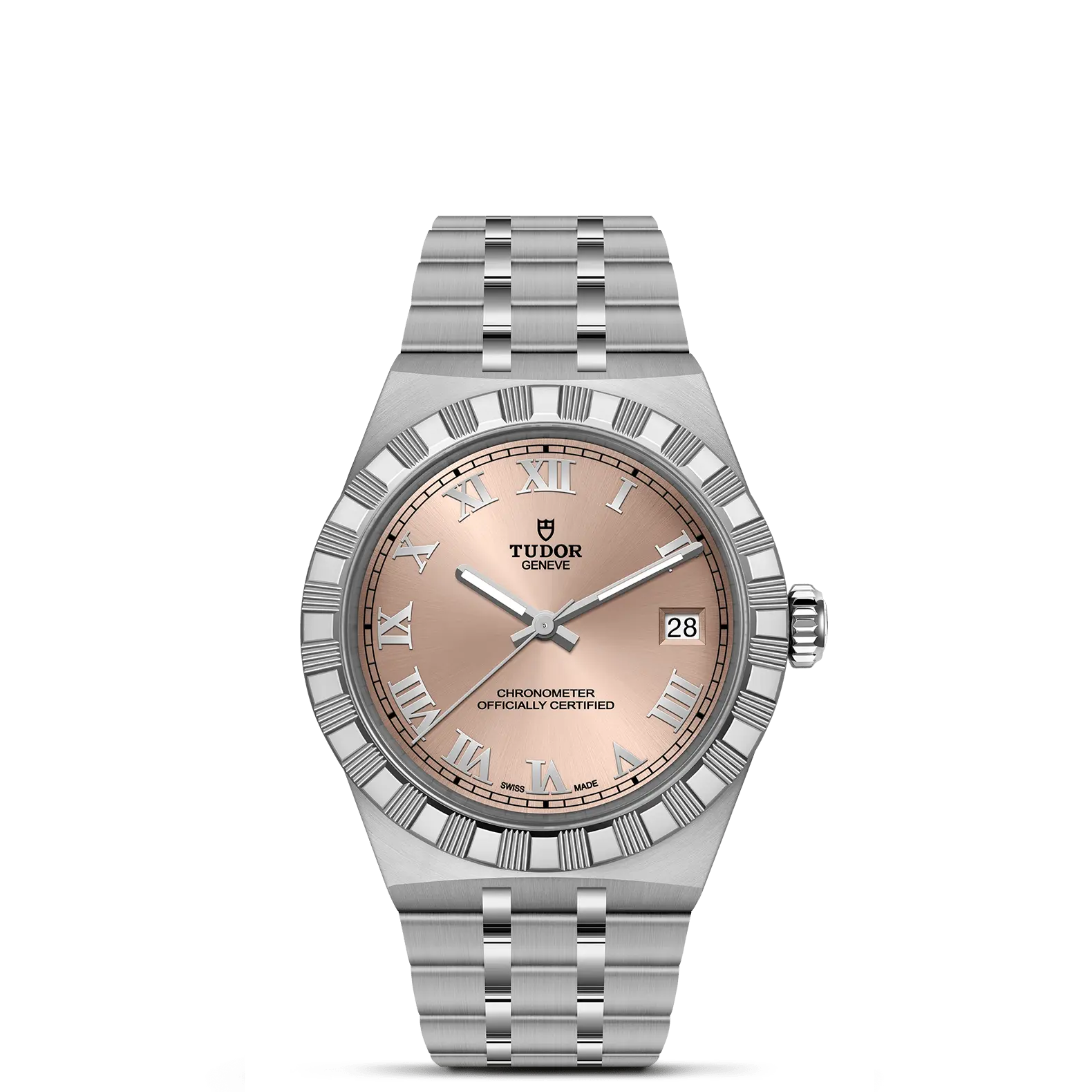 ステンレススチール製5リンクの一体型ブレスレット、サイドリンクとセンターリンクはサテンブラッシュ仕上げ、中間リンクはポリッシュ仕上げ、チューダー独自の“T-fit”セーフティキャッチ付きフォールディングクラスプ