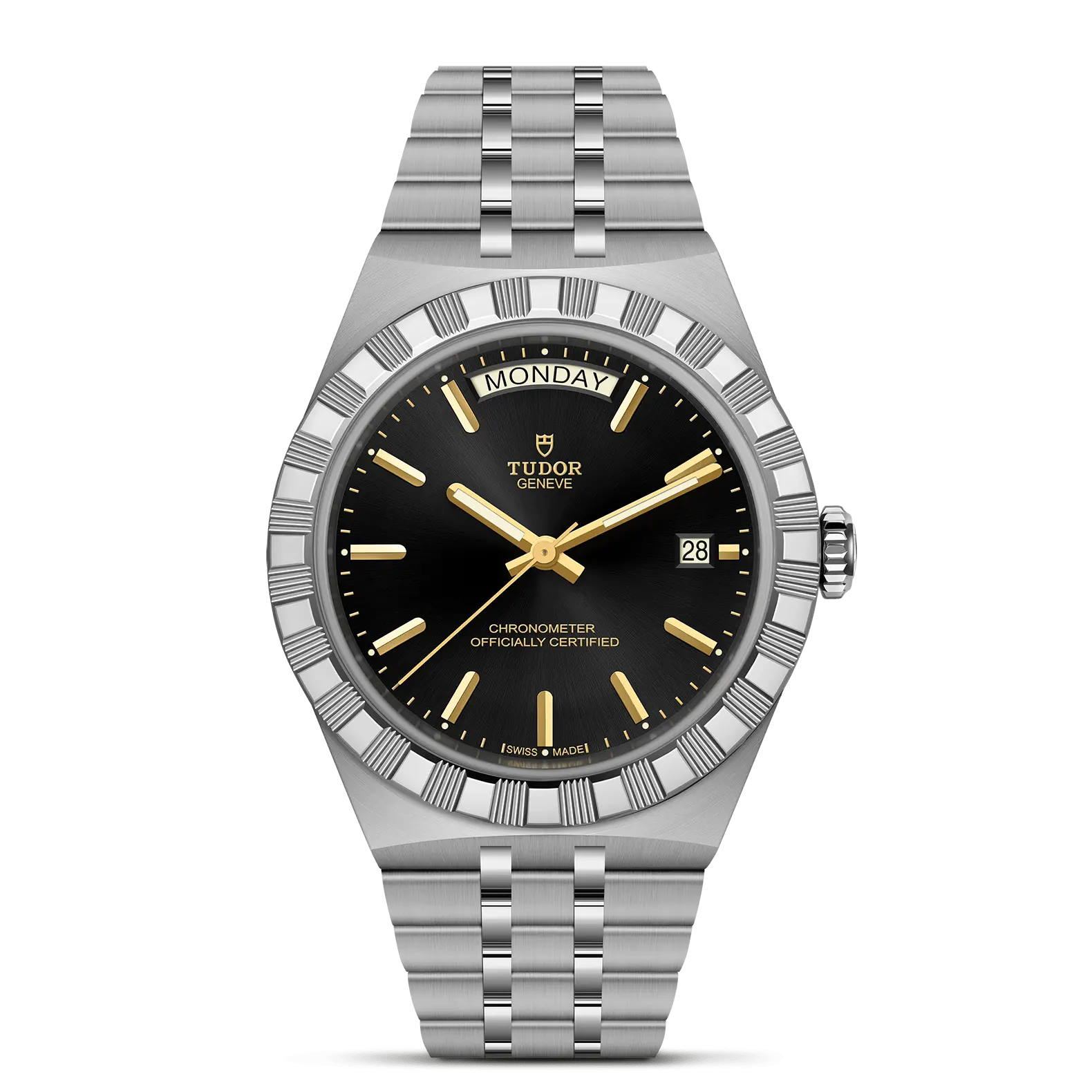 ブラックダイアル、バトン型のアプライド アワーマーカー 日付表示(3時位置) 曜日表示(12時位置)