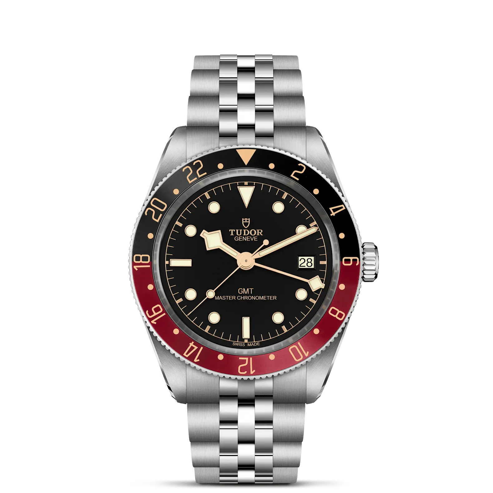 このモデルは、タイムゾーンを越えて飛び回る人々の出現と、豪華でエレガントなスタイルが結び付けられていた時代からインスピレーションを得ている。チューダーの新しいミディアムサイズのGMT機能付きマニュファクチュール キャリバーを搭載し、バーガンディ、ブラック、そしてゴールドプレートの温かい色合いのベゼルが備えられている。発表以来人気を博しているブラックベイ 58モデルの魅力的なケースが、ついにGMTにも導入されるのである。